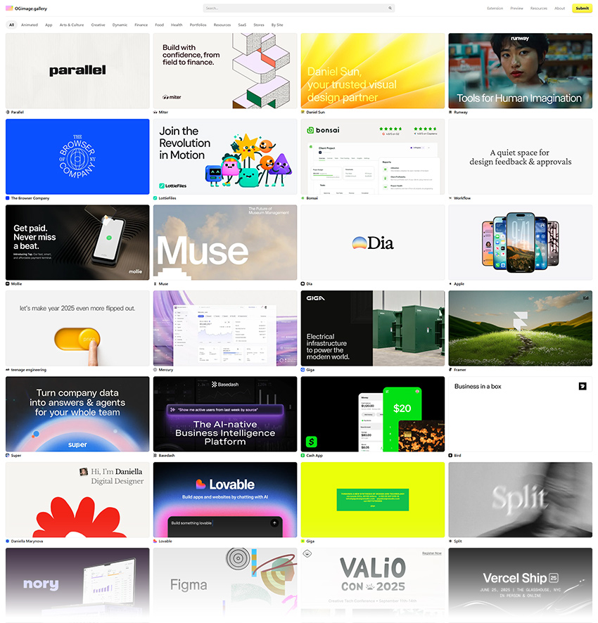 Spletna stran OGimage.gallery je zbirnik slik, ki jih različne strani uporabljajo za predstavitev vsebin. Seveda stran zbira izvirne in zanimive OG slike, ki so prikazano podobno, kot na družbenih omrežjih. OG slike ne predstavljajo le identitete vaše blagovne znamke, ampak lahko tudi pripomorejo pri interakciji z uporabniki (več klikov), SEO, … Zato vedno namenite dovolj časa izdelavi slednjih, še posebej če veliko vlagate v svoje vsebine.